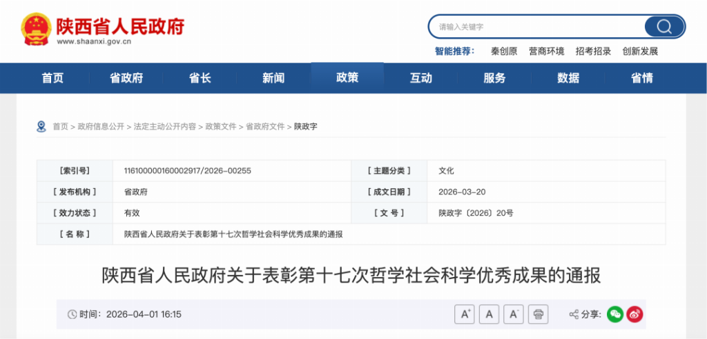 (来源:陕西省人民政府官网https://www.shaanxi.gov.cn/zfxxgk/fdzdgknr/zcwj/nszfwj/szz/202604/t20260401_3626682.html)